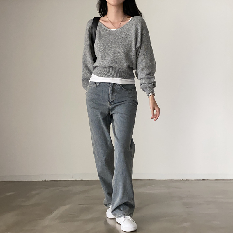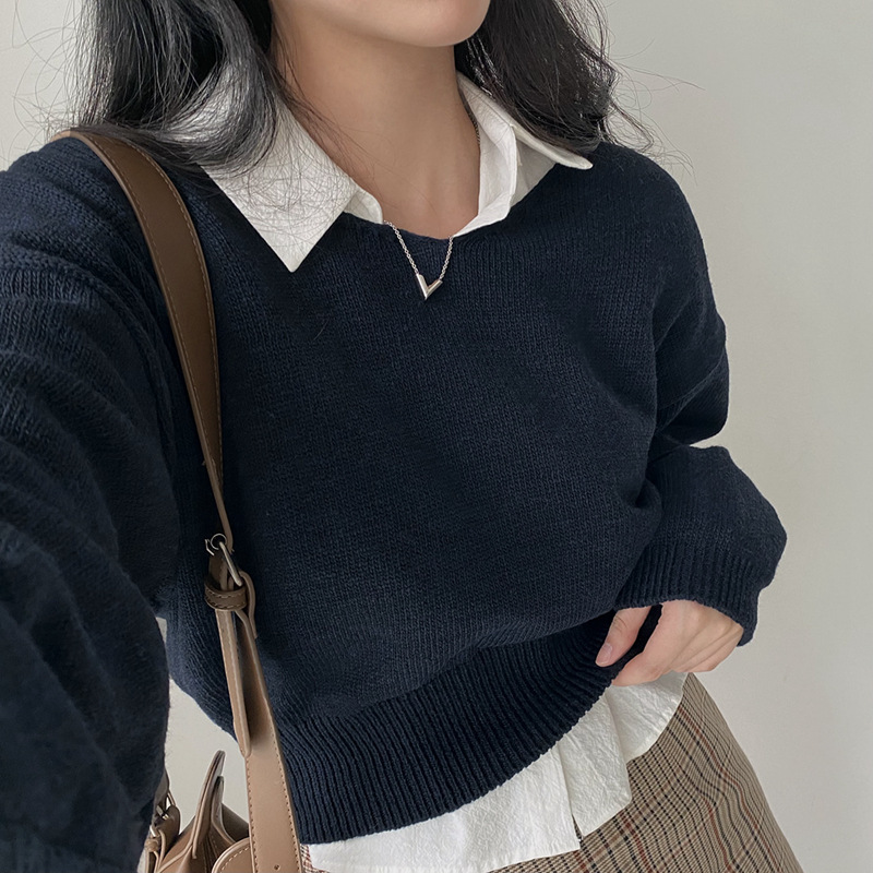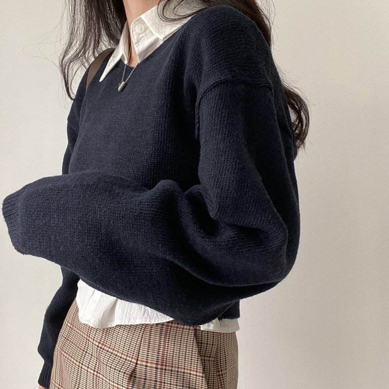 All-matching V-neck Pullover Sweater Long Sleeve Thermal Sweater
