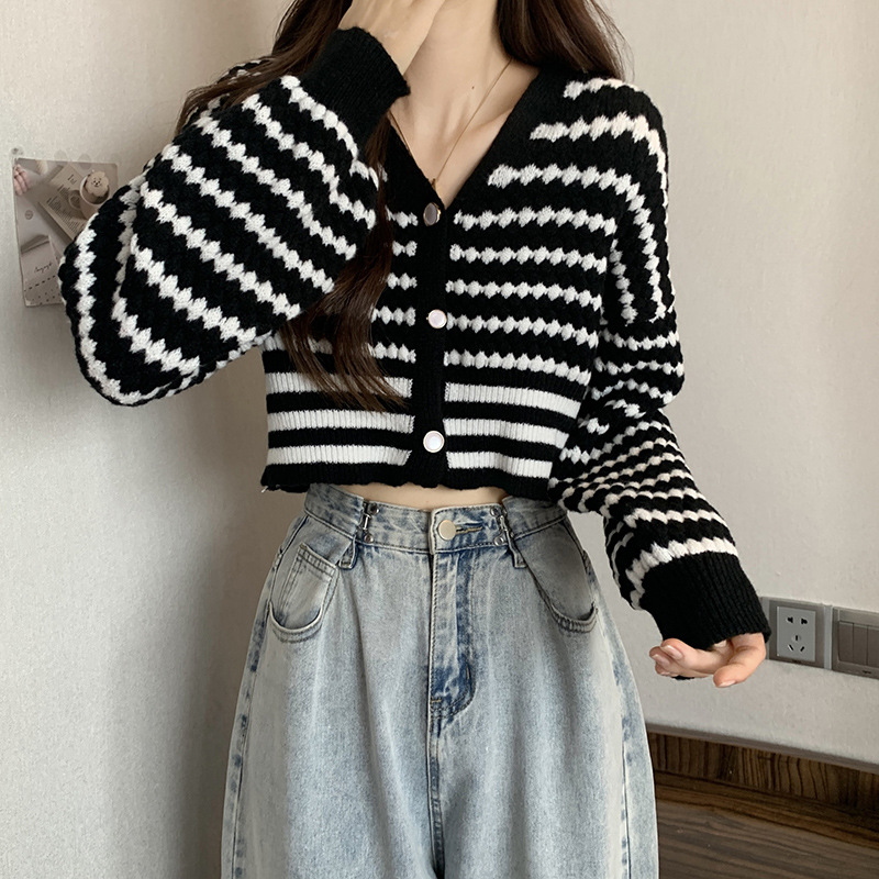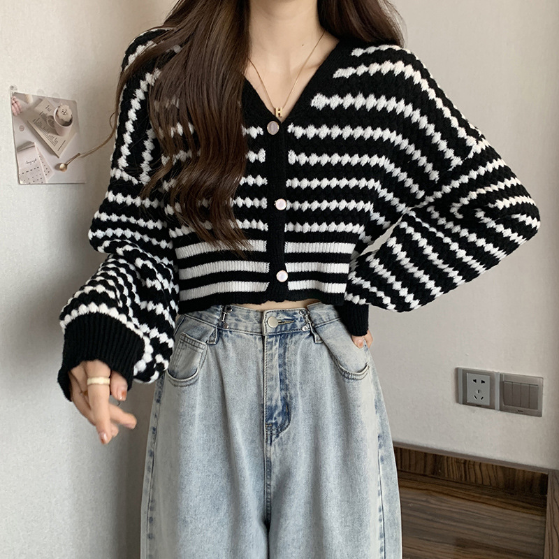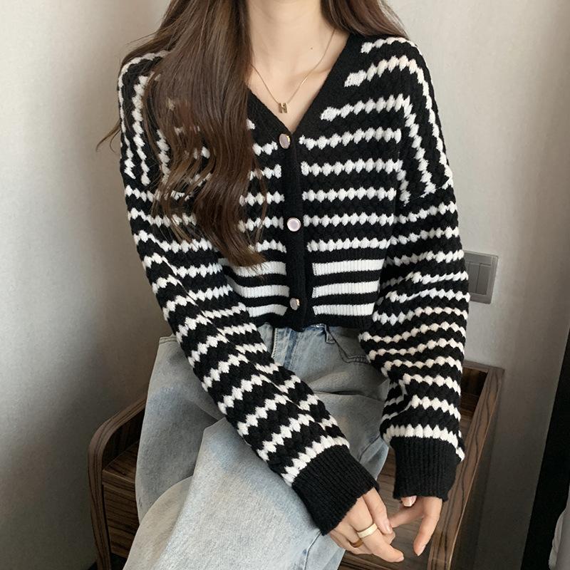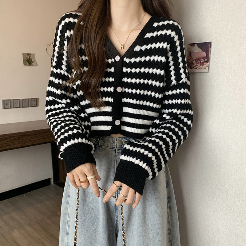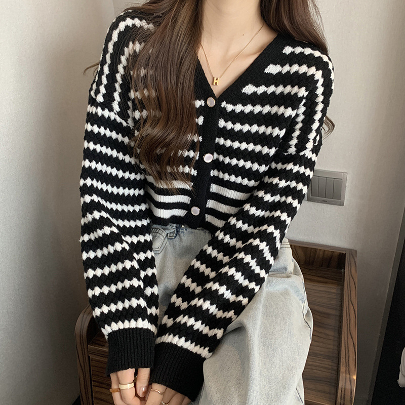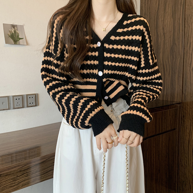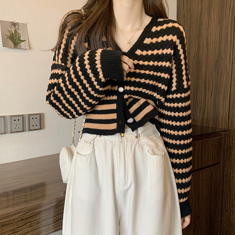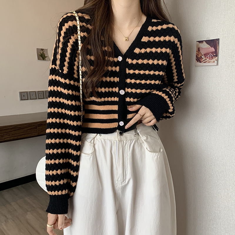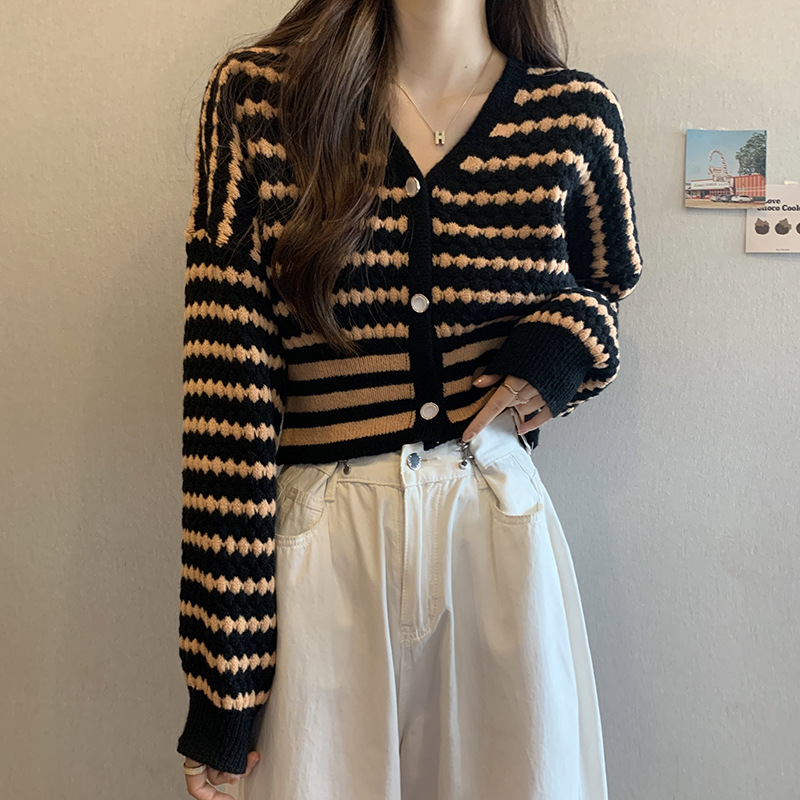 French Style Classic Style Cardigan Knitted Short Striped Sweater