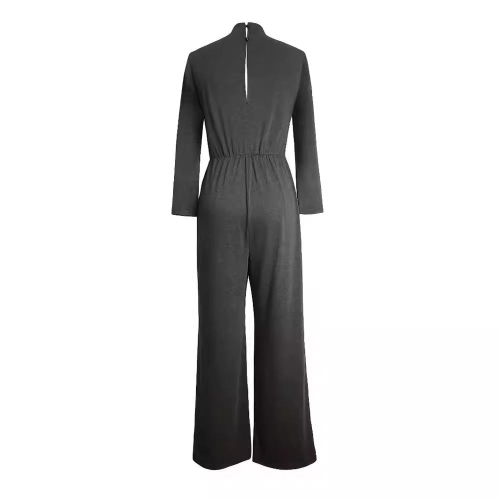 Small Turtleneck Long Sleeve Jumpsuit Knitted Casual Pants Straight