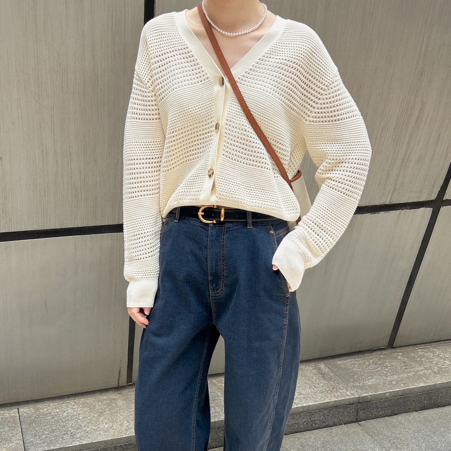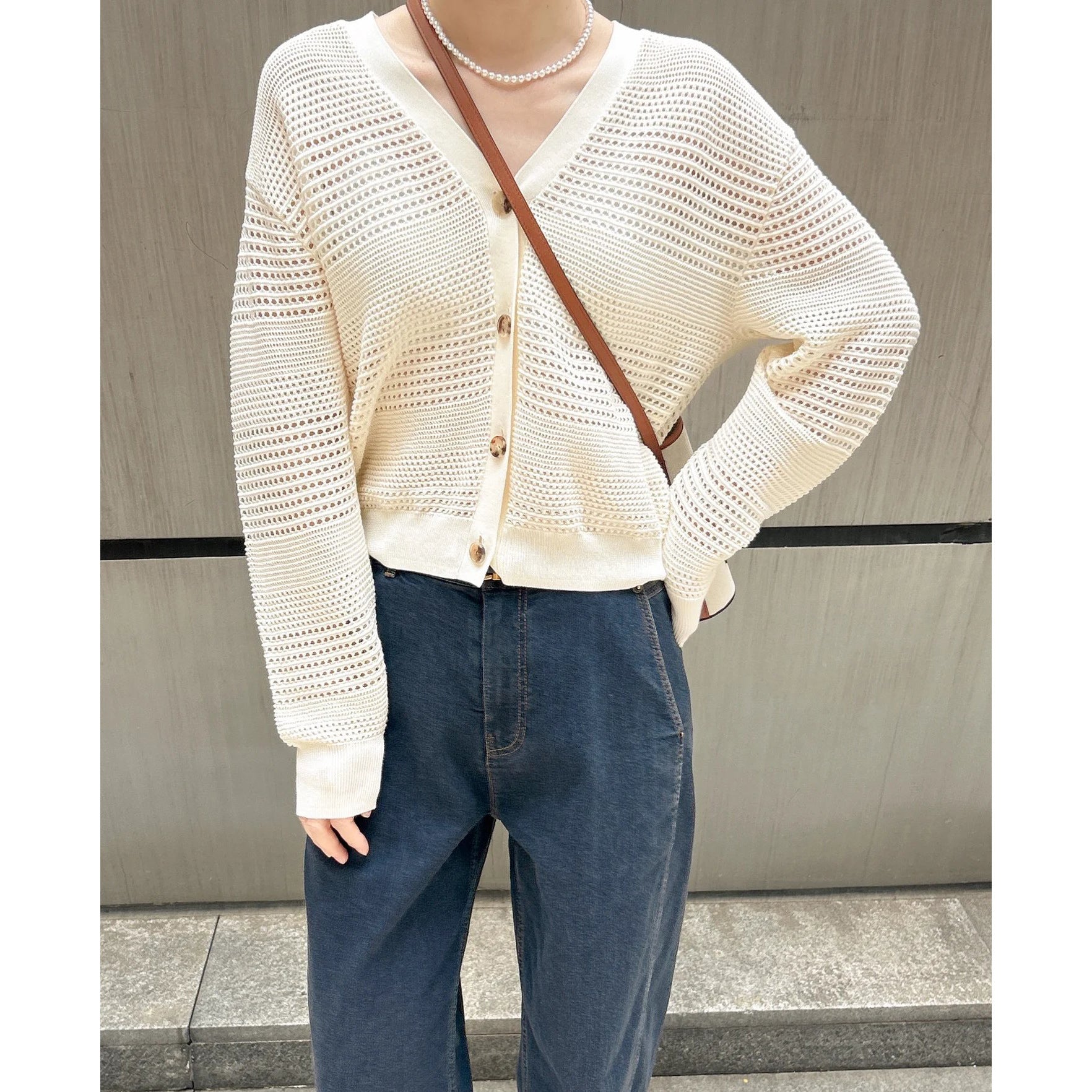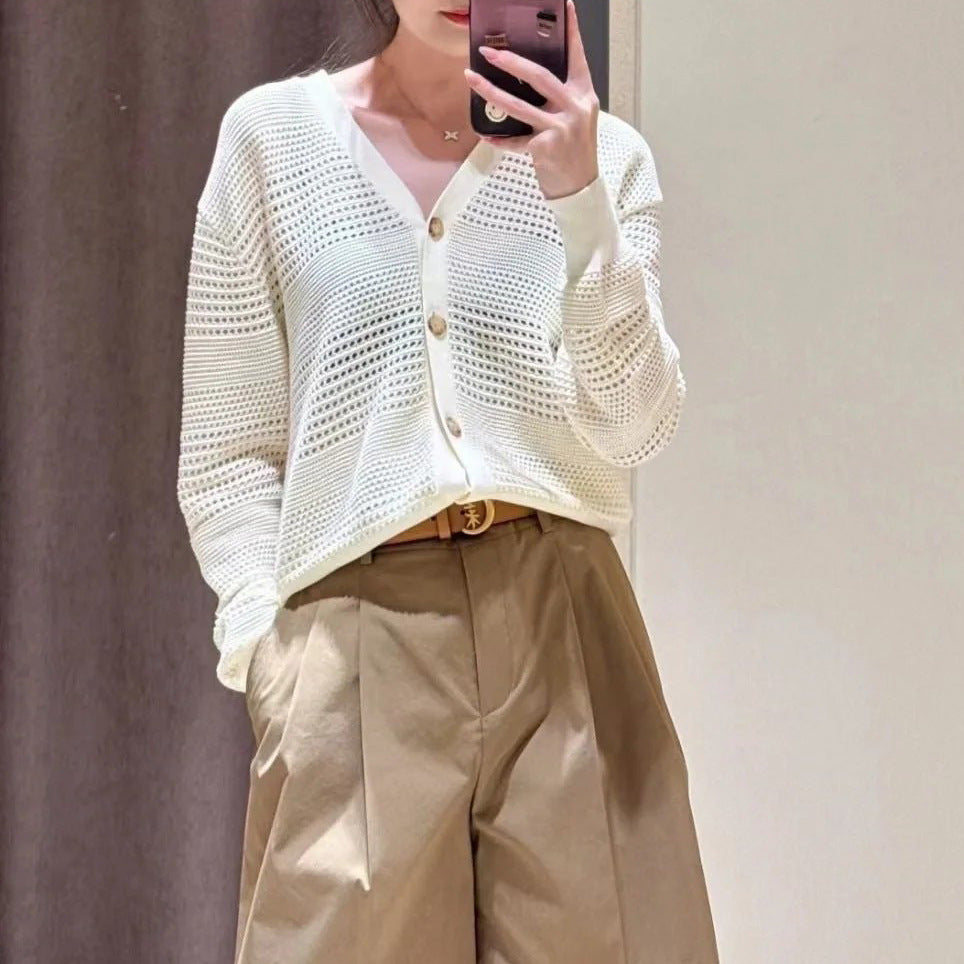 White Dignified Hollow Cardigan Outer Wear Sweater