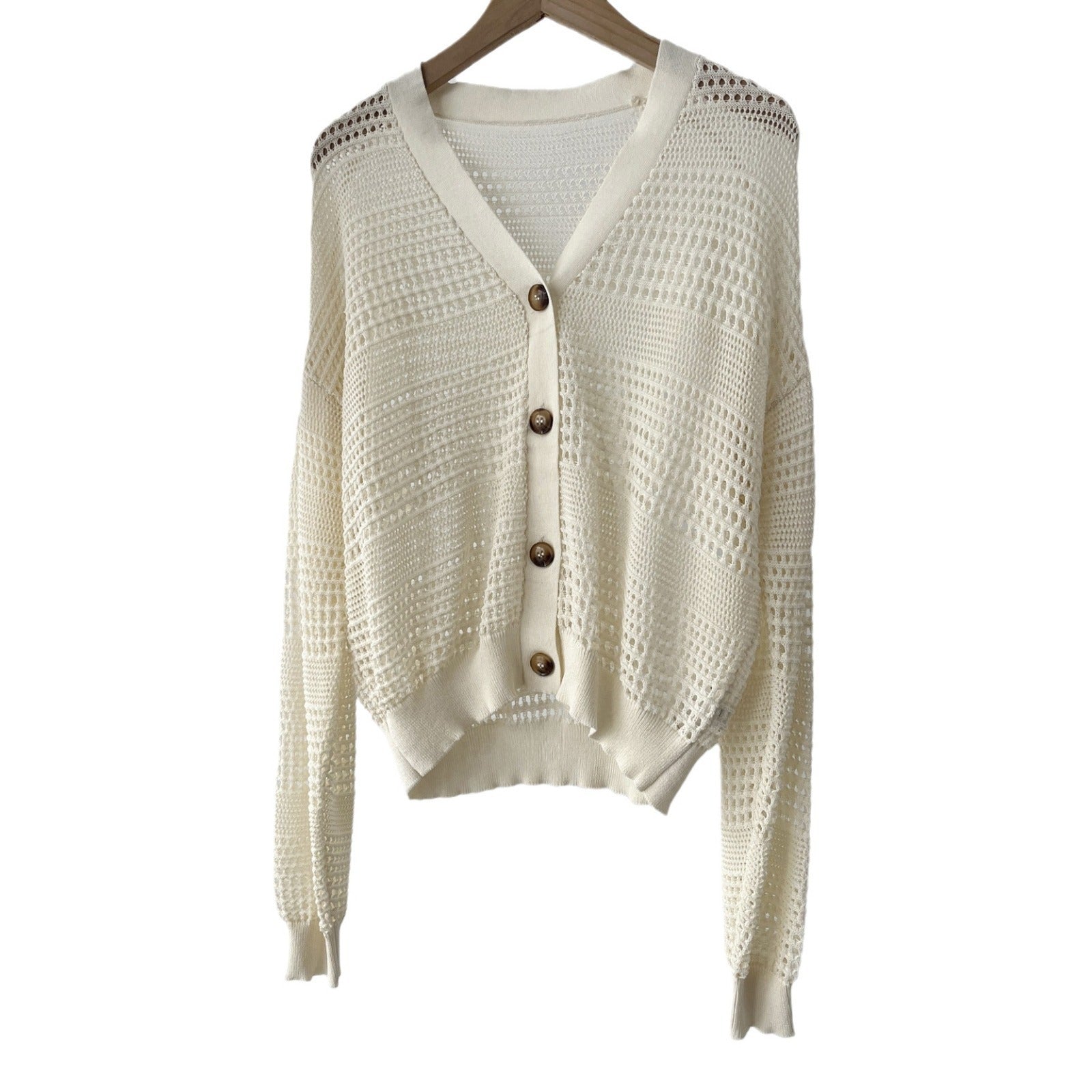 Product information: Color: White Size: M,L Style type: Japanese and Korean casual Popular elements: hollow out Style: Cardigan Fabric name:... Read more