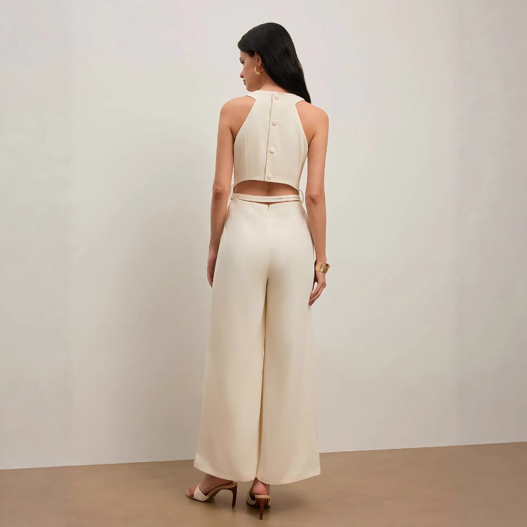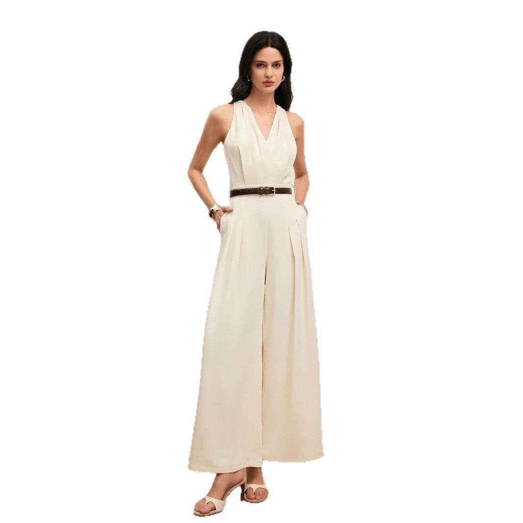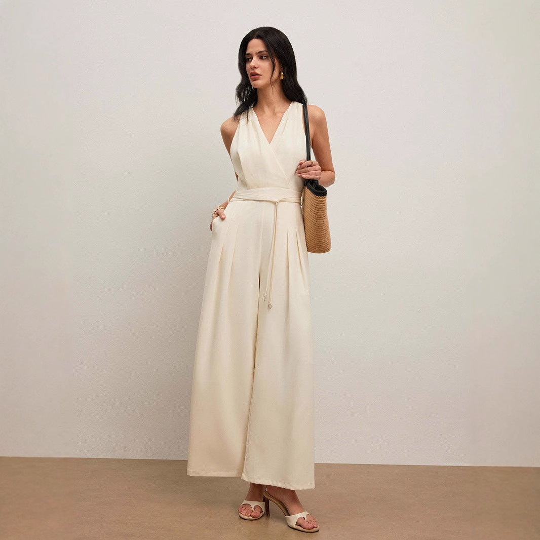Women's Solid Color And V-neck Sleeveless Fashion Casual Jumpsuit