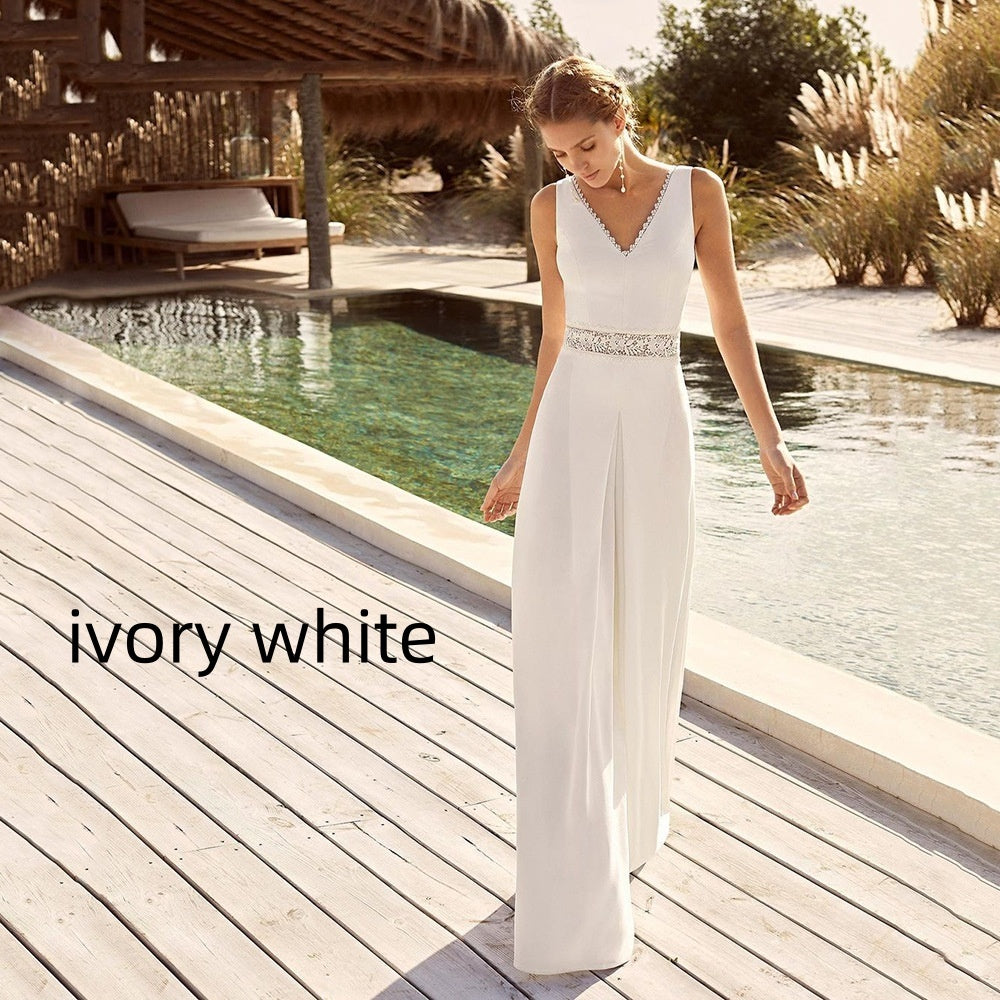 Women's Solid Color Casual V-neck Backless Jumpsuit
